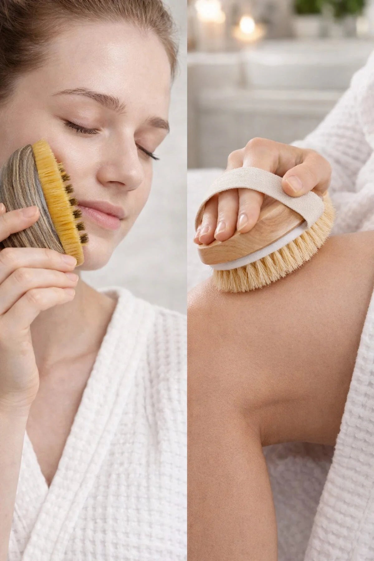 Yumuşak ve ergonomik lenfatik fırça yüz ve boyunda cildi çizmeden nazik bir şekillendirme sağlarken, doğal at kılı fırçası vücudunuzda kan dolaşımını artırır, ölü derilerden arındırır ve selülit görünümünü azaltmaya yardımcı olur.